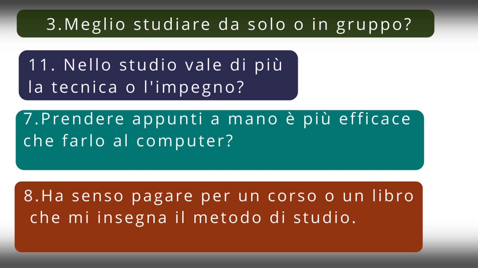 Meglio studiare da solo o in gruppo? Serve pagare per un corso o un libro sul metodo di studio? Appunti a mano o digitali?